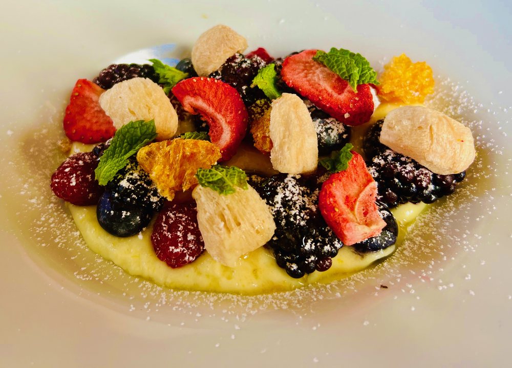 angelfoodcake, tangelo mascarpone, meyer lemon curd, blood orange syrup, macadamia nut, rio red grapefruit, naval orange
